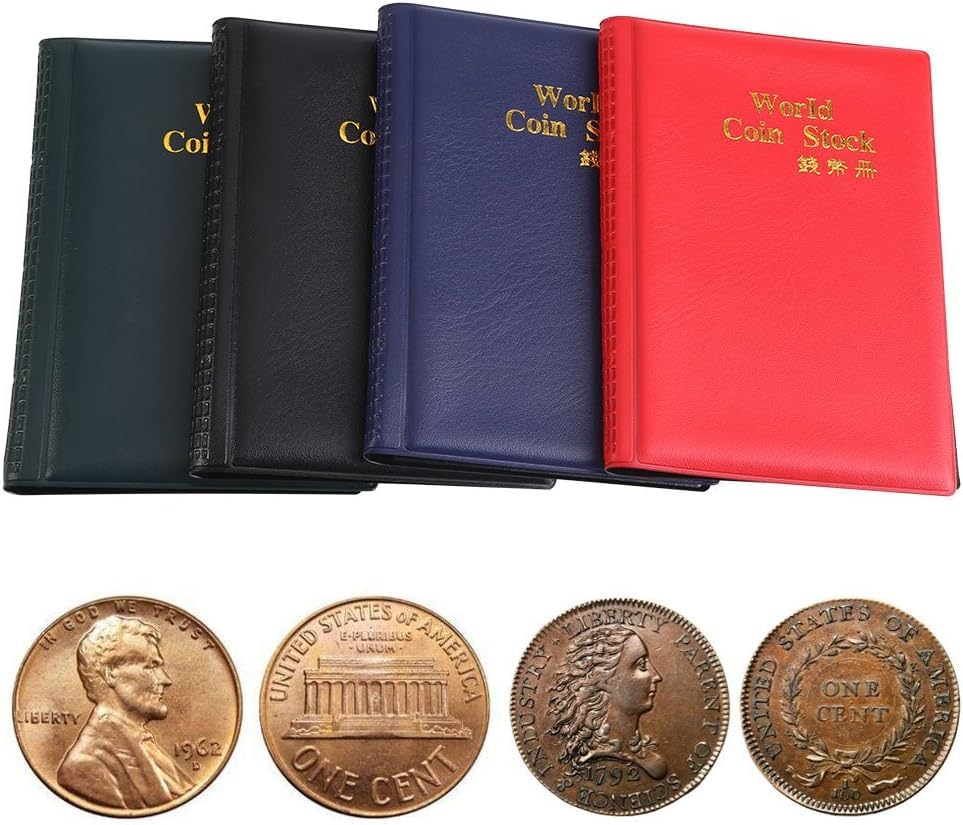 - ألبوم تجميع عملات من ماي سوق-ستور، قطعة واحدة / 120 جيب، دفتر صغير لتخزين العملات المعدنية والهدايا التذكارية لهواة التجميع (أحمر)