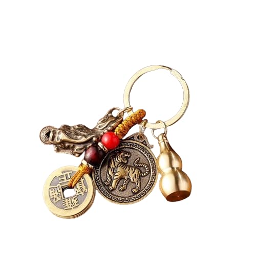 Generic - سلسلة مفاتيح من ماي سوق ستور [قطعة واحدة] صينية تقليدية لرسم النقود بي شيو معلقة للسيارة سلالة تشينغ الاسرة الخمسة الاباطرة والقرع ACLJY486-3 نحاس أصفر