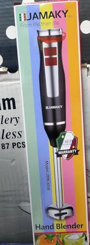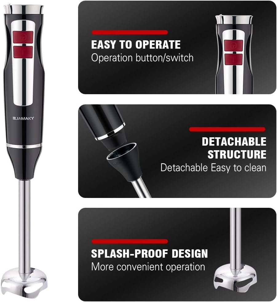 - خلاط يدوي، 1500 واط، سرعة عالية مع التكنولوجيا الإيطالية، شفرات قوية وحادة للاستخدامات المتعددة، محرك نحاسي نقي JMK3008 أسود-5512 - شفرات مطلية بالتيتانيوم الذهبي