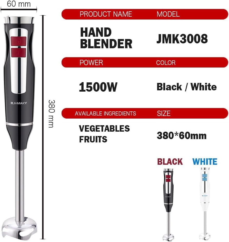 Generic - خلاط يدوي من ماي سوق-ستور 1500 واط سرعة عالية مع تقنية ايطالية شفرات قوية وحادة للاستخدامات المتعددة - JMK3008 فضي - محرك نحاسي - مطلية بالتيتانيوم ابيض