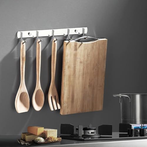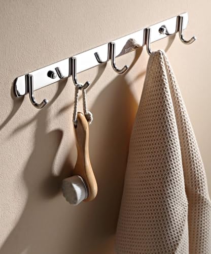 - حامل معاطف يثبت على الحائط من الستانلس ستيل مع 5 خطافات من ماي سوق ستور (قطعة واحدة) - شماعة عصرية شديدة التحمل للمدخل والحمام والمطبخ وغرفة النوم - لمسة نهائية مصقولة مقاومة للصدأ الطول: 36.5 سم
