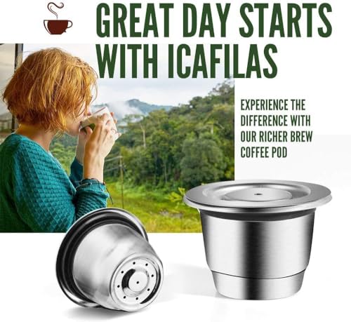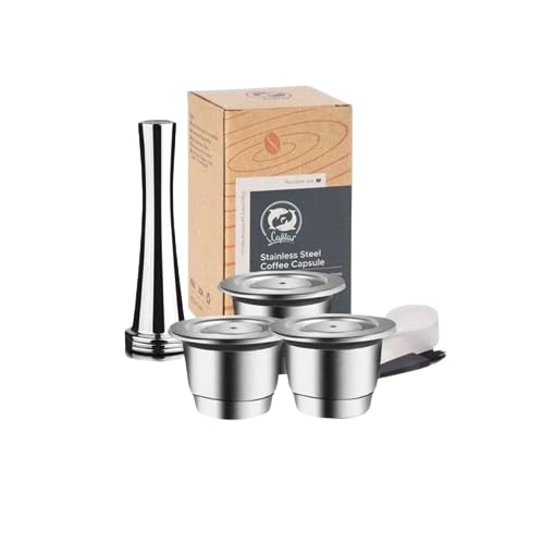 Generic - طقم كبسولة قهوة قابلة لإعادة التعبئة والاستخدام من الفولاذ المقاوم للصدأ مكون من 3 قطع كبسول و ملعقة صغيرة و1 تيمبر فلاتر الإسبريسو الغنية بالكريمة تناسب اينسيا بيكسي اسينزا ميني من ماي سوق-ستور