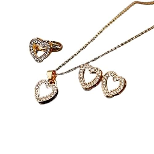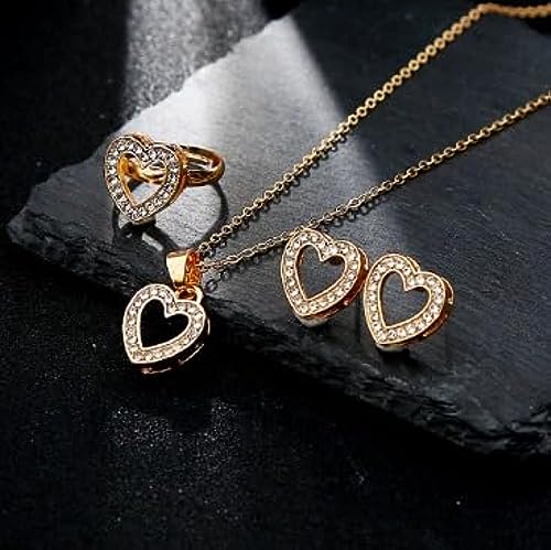 Generic - مجموعة مجوهرات للنساء كلاسيكية مطلية بالذهب ومرصعة بكريستال وزركون من 4 قطع سلسلة معدنية وانسيال وحلق وخاتم ماي سوق ستور معدن ابونيو