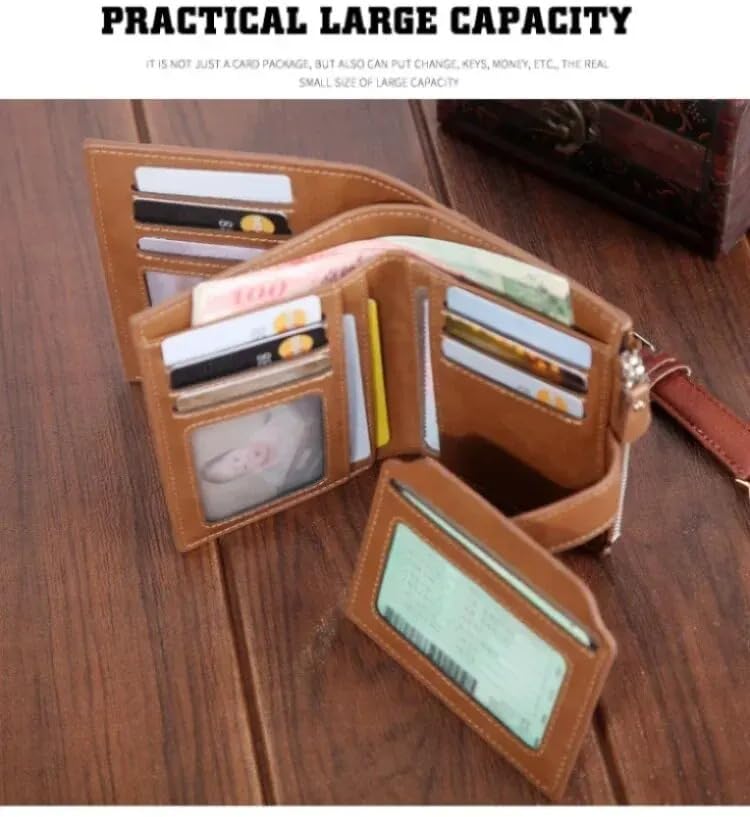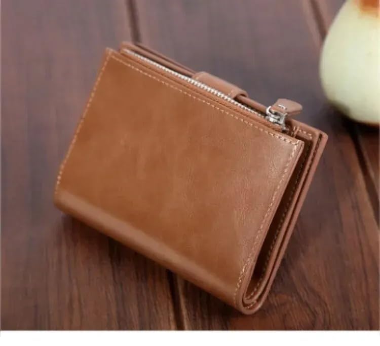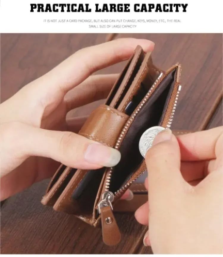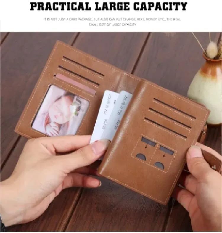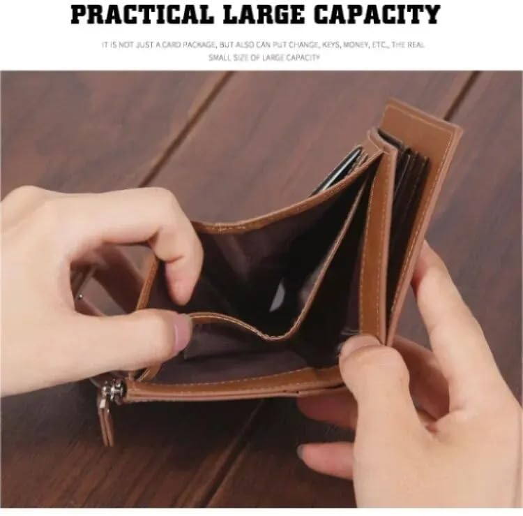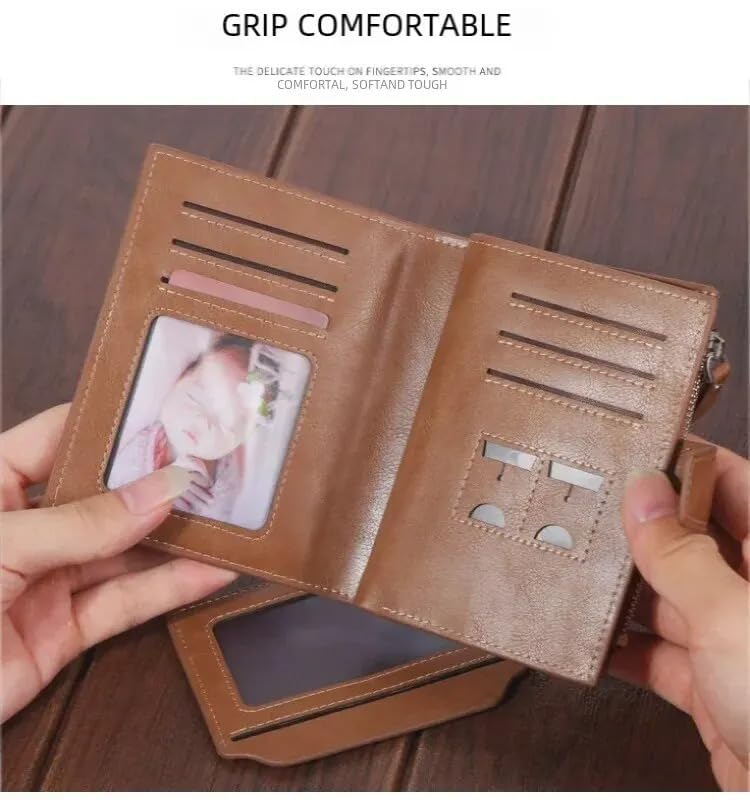 Generic - محفظة قصيرة للرجال من ماي سوق ستور بسعة كبيرة بسحاب من الجلد الزيتي الناعم محفظة عملات معدنية عمودية مربعة الشكل كاجوال نمط داكرون الزفاف