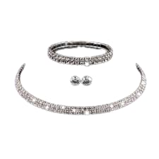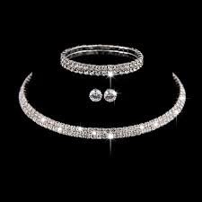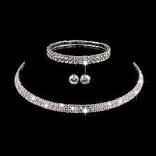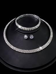 Generic - طقم مجوهرات للعروس من ماي سوق ستور [طقم واحد] طقم مجوهرات للعروس مرصع بحجر الراين مطلي بالفضة لفستان الزفاف والولائم وقلادة واقراط، هدية للسيدات (005)، ال اي سي، متعدد الألوان