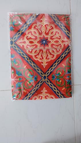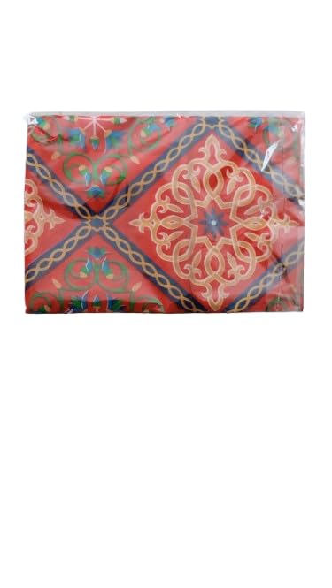 LC - مفرش طاولة بتصميم خيامية رمضان من القطن المختلط مع طرف بلون أحمر من ماي سوق ستور، مفرش طاولة مزخرف لاحتفالات رمضان، [مستطيل] (2 × 1.50 م)