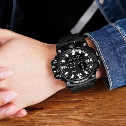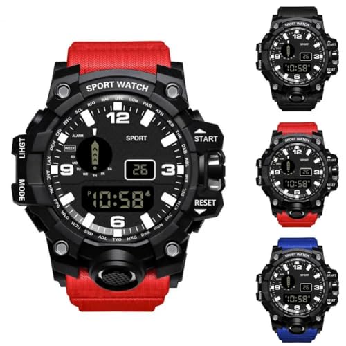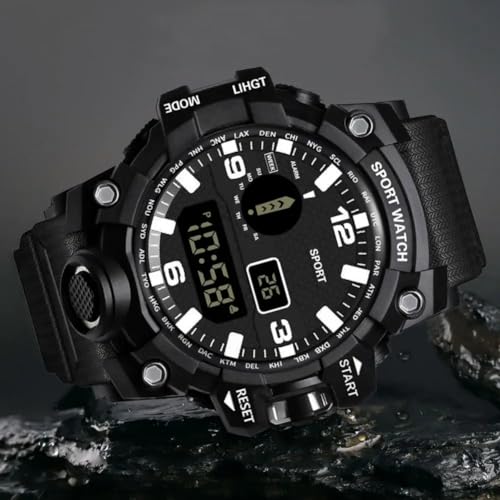 Generic - ساعة رقمية LED للرجال من ماي سوق ستور- لون عشوائي رياضية إلكترونية متعددة الوظائف للياقة البدنية بتصميم عسكري مناسبة كهدية للأطفال بسوار أسود