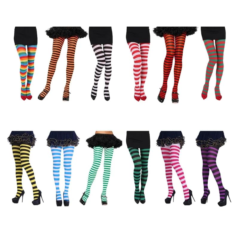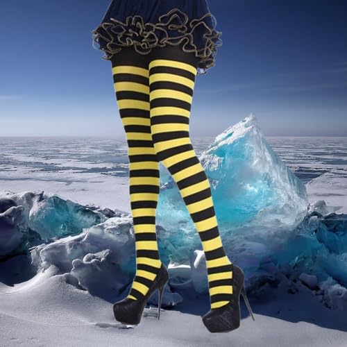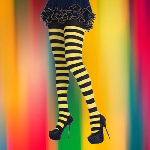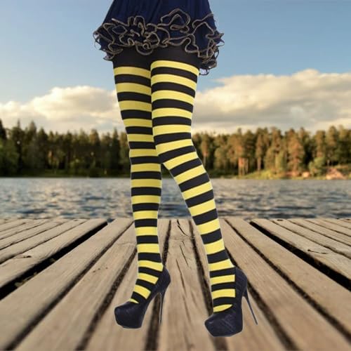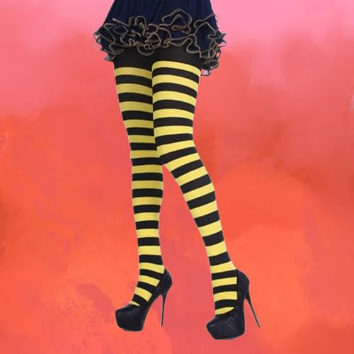Generic - جوارب طويلة عالية الخصر مخططة بالوان متباينة للكريسماس والهالوين من ماي سوق ستور (مقاس واحد، الوزن الموصى به: 40 كجم - 75 كجم) (اصفر واسود)