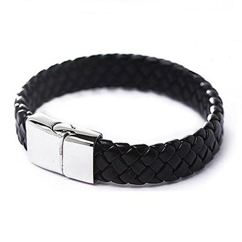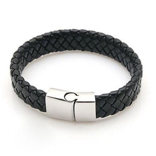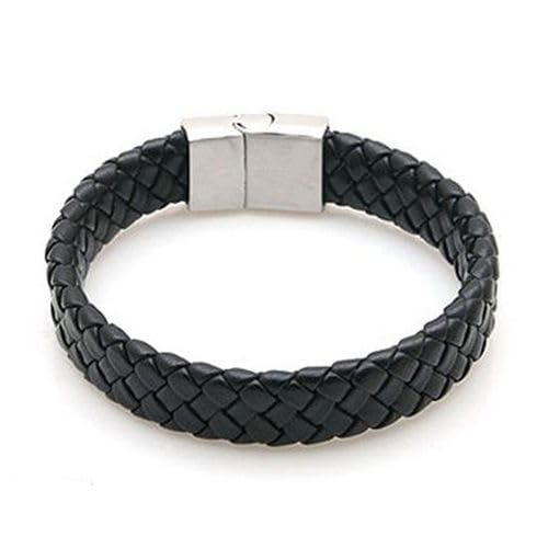 Generic - سوار معصم كلاسيكي للرجال من ماي سوق ستور مصنوع من خليط معدني من الجلد الصناعي بتصميم مضفر مغناطيسي بطول 20 سم لون اسود - عرض 9 ملم