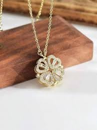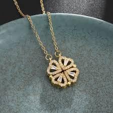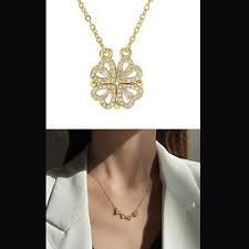 Generic - قلادة 2 في 1 من الستانلس ستيل بتصميم قلب وزهرة من الستانلس ستيل بتصميم جميل على شكل قلب وحجر الزركون للنساء والبنات من ماي سوق. ستوت، قطعة واحدة - SR9130