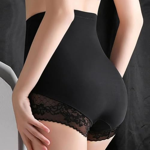 Generic - سروال داخلي للنساء من ماي سوق-ستري خصر مرتفع الدانتيل مطرز بالزهور للتحكم في البطن ورفع المؤخرة رفيع وناعم ومضاد للصرف الصحي ومرن وجيد التهوية اسود - 2XL قطن