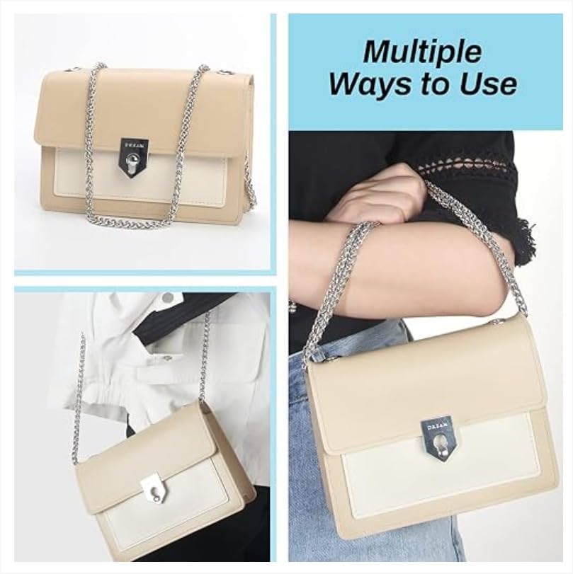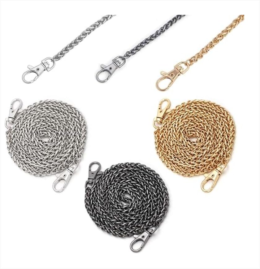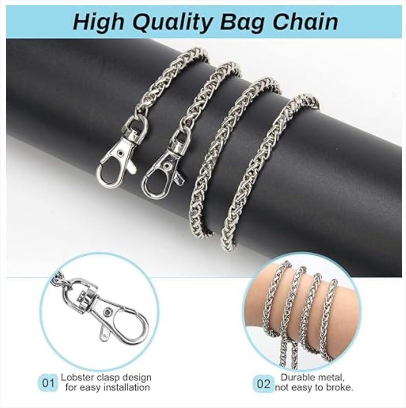 Generic - [ماي سوق ايج] حزام سلسلة معدني فضي اللون - سلسلة كتف قابلة للفصل / شنطة كروس مع مشابك دوارة - ملحقات بديلة لحقيبة اليد قد تختلف حلقات نهاية السلسلة (110 سم/45 انش])