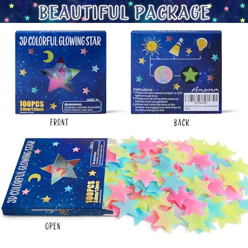 Generic - ملصقات جدارية ملونة ثلاثية الأبعاد، ملصقات سقف مضيئة تتوهج في الظلام، قطع 3.8 سم، نجوم متعددة الألوان لتزيين غرفة الأطفال وأعياد الميلاد من ماي سوق ايجبت، 200 قطعة