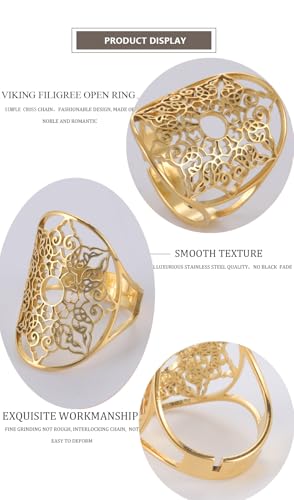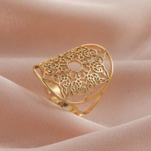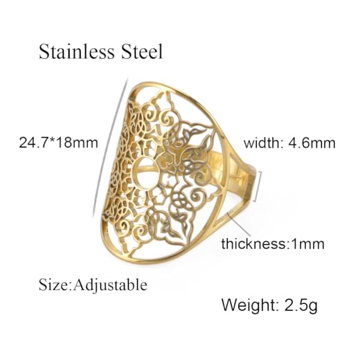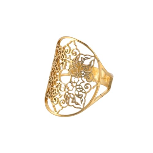 Generic - خاتم لوكتون مفرغ من ماي سوق ايج، مصنوع من الستانلس ستيل، ذهبي وفضي، مقاس قابل للتعديل، نمط الباروك العتيق، نمط زهرة هندسية، 24.7 × 18 ملم
