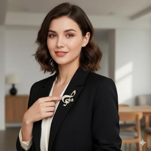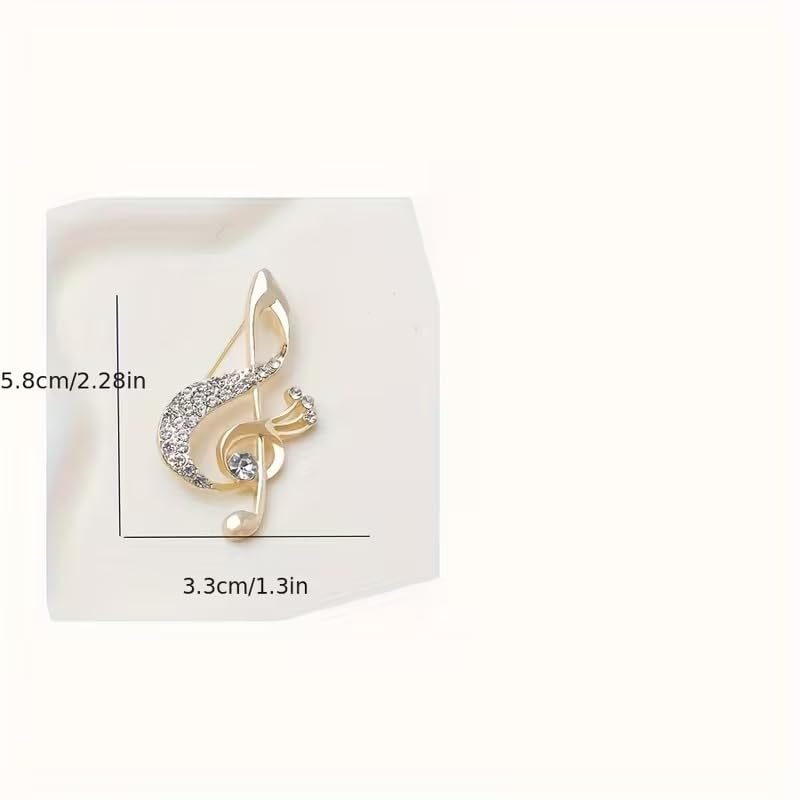 Generic - دبوس بروش نوتة موسيقية من ماي سوق ايج، تصميم كليف ثلاثي مرصع باحجار الراين الذهبية على الطراز الفرنسي، اكسسوارات ملابس للنساء، 5.8 سم × 3.3 سم