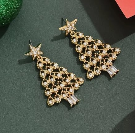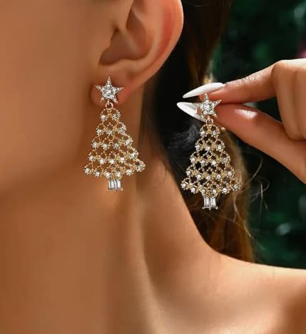 Generic - متجر (1 قطعة) اقراط متدلية على شكل شجرة الكريسماس للنساء، اقراط مرصعة بحجر الراين، مجوهرات العطلات لا تسبب الحساسية من ماي سوق ايج