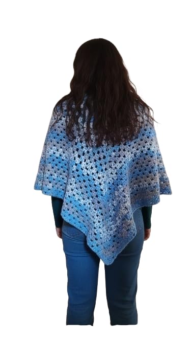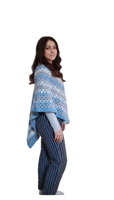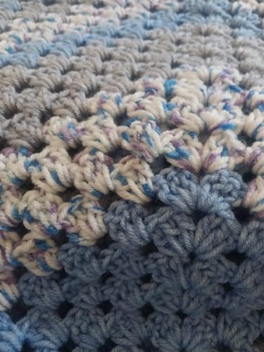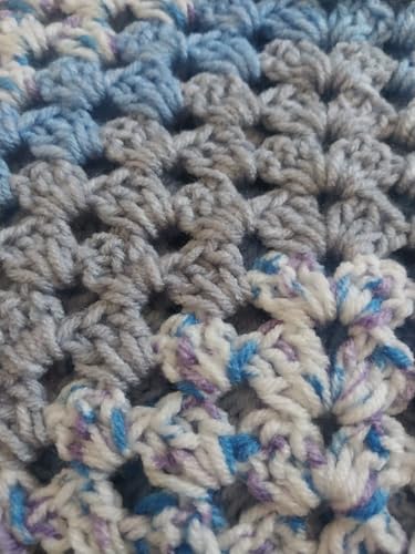 Generic - شال كروشيه مصنوع يدويا من ماي سوق ايج (قطعة واحدة) - تصميم مخطط فريد باللونين الازرق والرمادي بعرض 150 وطول 84