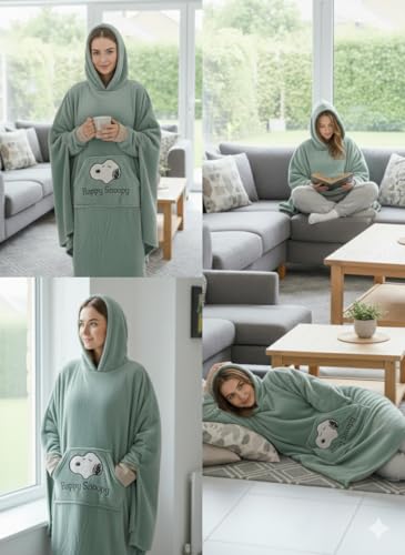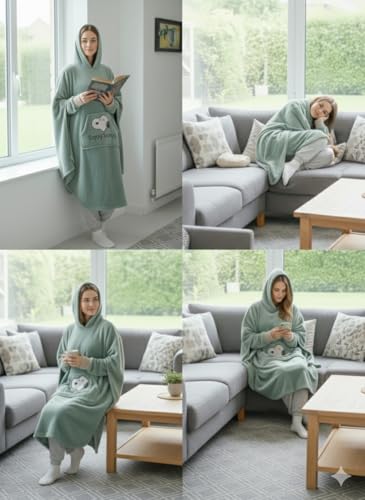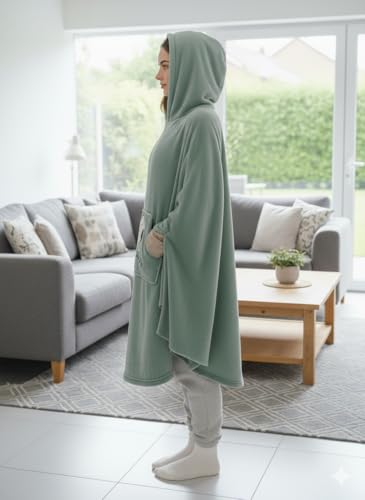 Generic - هودي بطانية شيربا كبيرة الحجم من المايكروفايبر قابلة للارتداء من ماي سوق ايج - سويت شيرت عملاق فائق النعومة بجيب امامي عملاق - اصدار - اخضر داكن - مقاس واحد يناسب الجميع