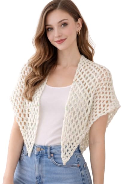 Generic - شال كروشيه للنساء من ماي سوق ايج - شال كروشيه متعدد الالوان بتصميم مفتوح محبوك مثالي للف الكتف او شال خفيف او وشاح انيق (130 × 65 سم)