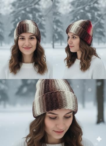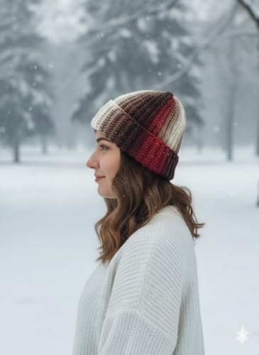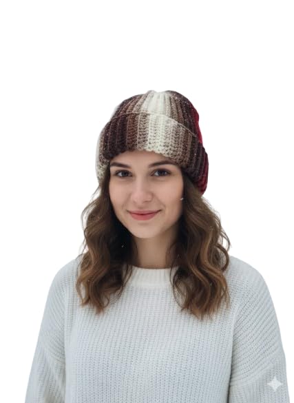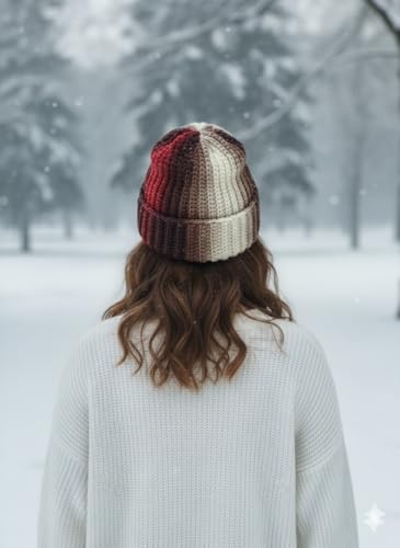 Generic - قبعة صغيرة منسوجة مضلعة للنساء من ماي سوق ايج - خطوط متدرجة انيقة - قبعة شتوية ناعمة دافئة للطقس البارد (قطعة واحدة)