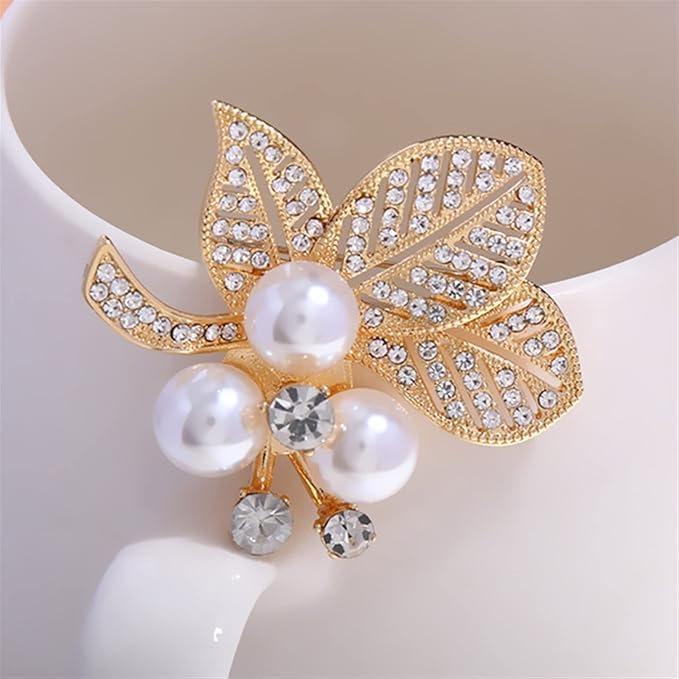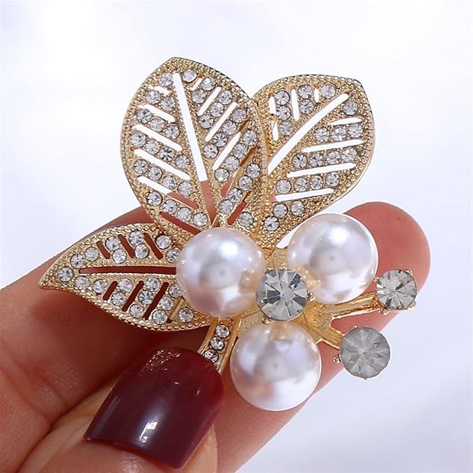 Generic - MySouqEg - Store - (1pcs) Crystal Pearl Flower Brooches Pins Fashion Beautiful Created Rhinestone Floral Brooch Good Idea for Party Dance Wedding Banquet for Elegant Women Girl