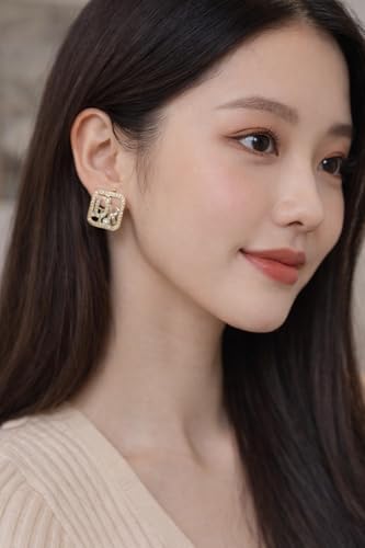 Generic - ماي سوق ايج - ستور - (1 قطعة) اقراط مرصعة مربعة انيقة للنساء تتميز بتصميم حروف دي ار الانيق مزينة باحجار لامعة لمظهر فاخر وعصري. مصنوعة بجودة عالية