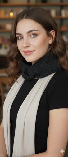 Generic - سكارف شتوي كروشيه مصنوع يدويا من ماي سوق ايج لتدفئة الرقبة للجنسين - رمادي داكن انيق مقاس 26 × 13 سم