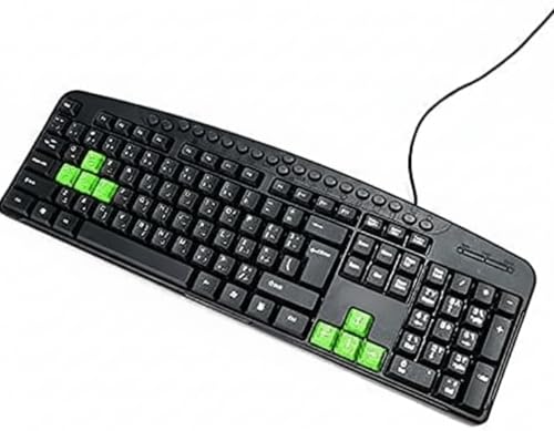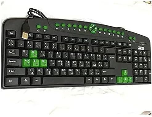 - لوحة مفاتيح وسائط متعددة للكمبيوتر واللاب توب من ماي سوق ايج، أغطية مفاتيح سوداء متباينة باللون الأخضر - بتصميم عربي/انجليزي