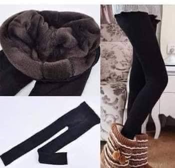 Generic - بنطلون لجينجز مبطن بالفرو مع كعب خاص للطقس الشتوي مبطن بالفرو من الداخل للحصول على دفء رائع وشكل مميز من ماي سوق ايج - قطعة واحدة - اسود