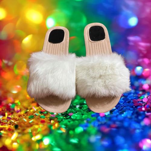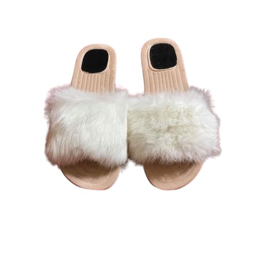 Generic - شبشب فرو للنساء بتصميم مميز وانيق من ماي سوق ايج - جلد طبي مريح (نعل طبي) - فرو ابيض - مسطح (مقاس 41)