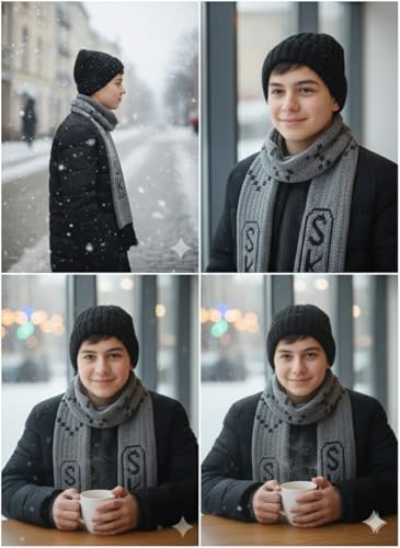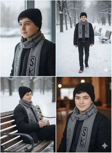Generic - ملابس شتوية فاخرة، طقم مكون من قطعتين: سكارف منسوج ناعم وطاقية صغيرة بتصميم مميز مناسب للطقس البارد والدافئ، سكارف بطول 1.4 م وآيس كاب بطول 20 سم من متجر سوق