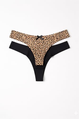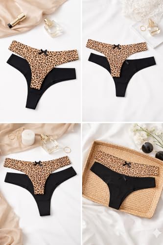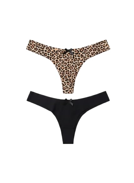 Generic - سراويل داخلية نسائية من ماي سوق ايج (قطعتان) - مجموعة من قطعتين (طباعة جلد الفهد واسود) | سراويل داخلية ناعمة قابلة للتمدد بدون خياطة، ملابس داخلية منخفضة الخصر، انيقة ومريحة وجيدة التهوية، مقاس 28