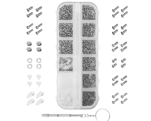 Generic - مجموعة اصلاح النظارات من ماي سوق ايج (600 قطعة) - براغي صغيرة وصواميل وغسالات ومفك براغي للنظارات والنظارات الشمسية والساعات