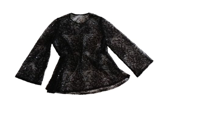 Generic - بلوزة انيقة من الدانتيل مزينة بالترتر الاسود من ماي سوق ايج ستور - بلوزة سهرة شبكية شفافة باكمام طويلة مزينة بالزهور - قميص لامع للحفلات والكوكتيل - الذراع 56 سم - تحت الذراع 61 سم - الارتفاع 75 سم