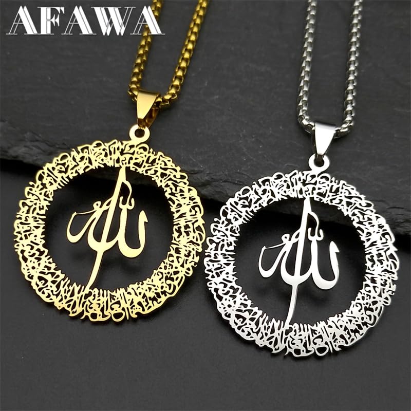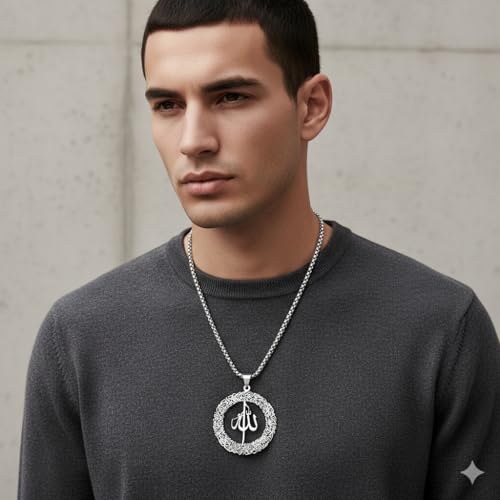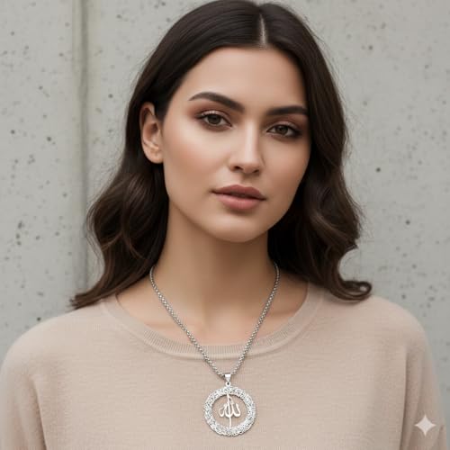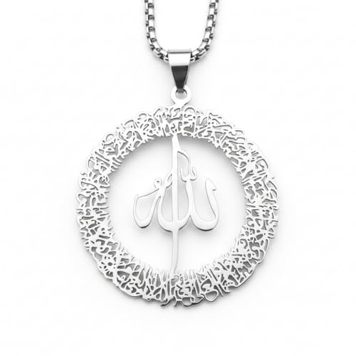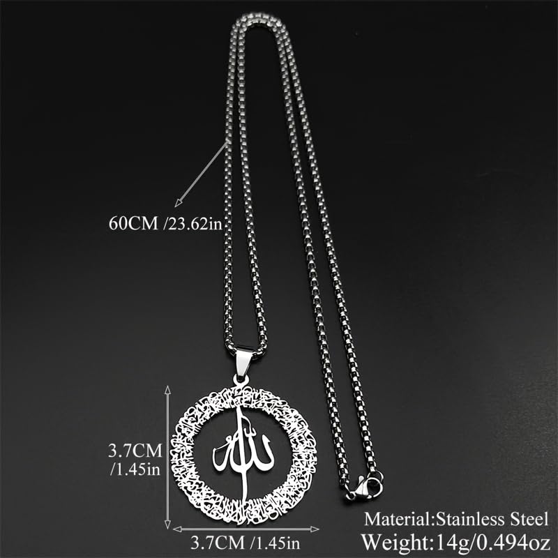 Generic - متجر ماي سوق ايج | قلادة بدلاية الله الاسلامية، ستانلس ستيل، تصميم الخط العربي، سلسلة 60 سم، فضي، مجوهرات دينية للرجال والنساء