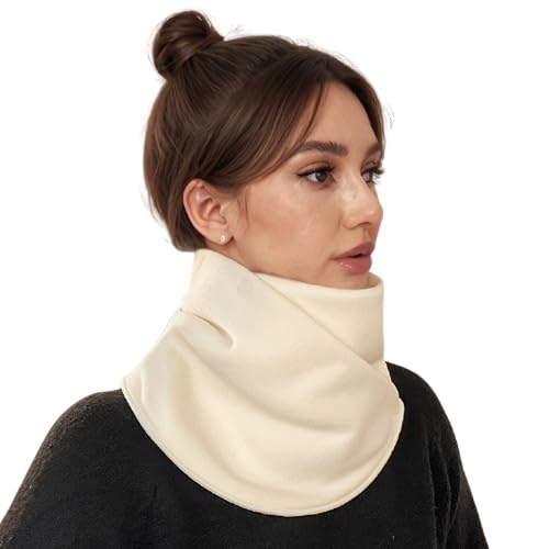 Generic - وشاح تدفئة الرقبة من الصوف السميك المطور من ماي سوق ايج، غطاء رقبة ناعم للشتاء مقاوم للرياح مع زر للاغلاق، حماية من الطقس البارد لركوب الدراجات والانشطة الخارجية، اسود وكريمي