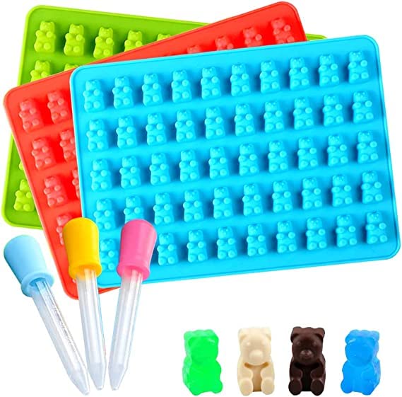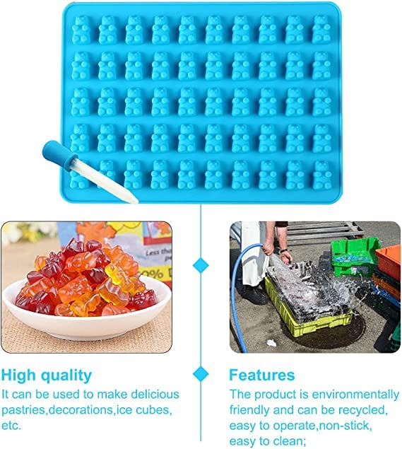 Generic - قالب الدب الغامض، 50 قالب حلوى الشوكولاتة السيليكون مع قطارة ازرق سماوى