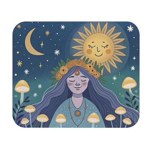 Generic - لوحة ماوس من ميستيكال جوديس، بنمط بوهو لشمس وقمر ورسمة زاهية مع سطح ناعم وقاعدة مضادة للانزلاق