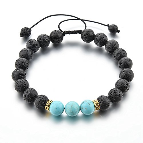 Generic - سوار خرزي بحجر اللافا من ميستيكس فيتنيس، قابل للتعديل، يعمل على توزيع روائح الزيوت العطرية للعلاج العطري المثالي لمكافحة الاجهاد او القلق، مناسب للرجال/ النساء