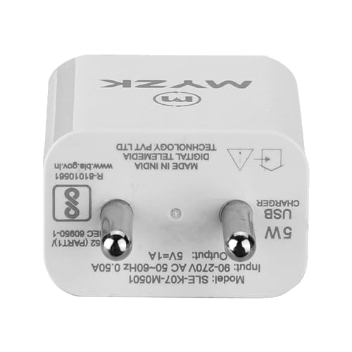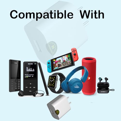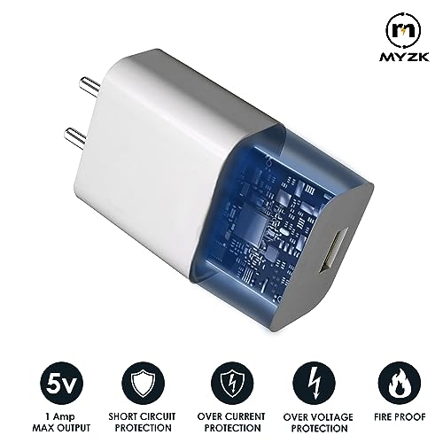 MYZK - شاحن حائط بمنفذ USB 5 فولت 1 امبير مع منفذ شحن سريع واحد لجميع الموبايلات والساعات الذكية، مكبر للصوت بلوتوث وسماعات للرأس ووحدات تحكم الألعاب بشريط حول الرقبة، ألعاب قابلة للشحن من MYZK، لون أبيض