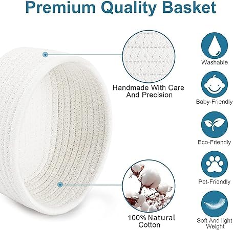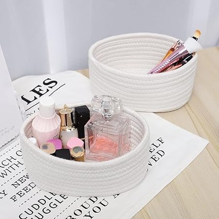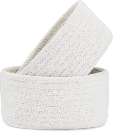 Generic - سلال صغيرة منسوجة من قطعتين، سلال تخزين صغيرة من الحبال القطنية، بيضاوية، صناديق تخزين مونتيسوري للالعاب والمنتجات الصحية والجوارب والحضانة وغرفة الاطفال - ابيض مقاس (19*14*9 ) من MZ