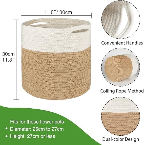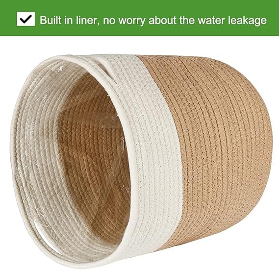 - جودة فائقة - مصنوع من القطن الطبيعي، وعاء النباتات آمن للاستخدام. منسوجة معززة على السلة لحمل وعاء الزهور الخاص بك بأمان. نسخة مطورة مع بطانة مدمجة لتجنب تسرب الماء