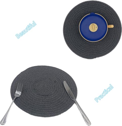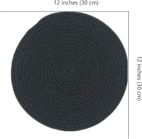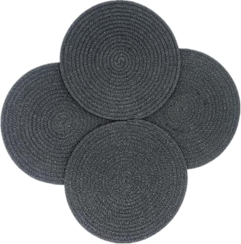 Generic - مفرش مائدة قطني منسوج مقاس 30 سم مفرش سميك عازل للحرارة مفرش طاولة منزلية قاعدة أكواب مفرش أطباق (قابل للغسيل) (من القطن الطبيعي) لون رمادي غامق من ام زد، مجموعة 4 قطع