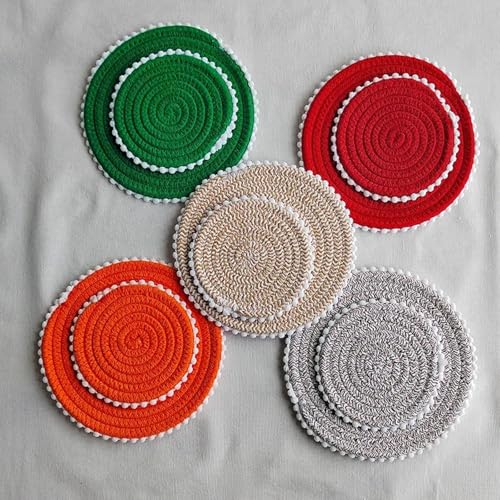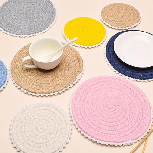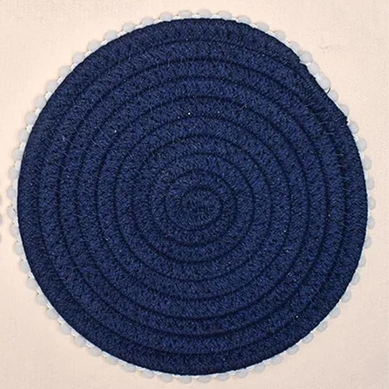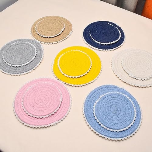 Generic - 6 قطع من مفارش المائدة المستديرة المصنوعة من الحبال القطنية للمطبخ مقاومة للحرارة، مفارش طاولة معزولة منسوجة، حوامل للمطبخ مقاومة للحرارة، ازرق، 18 سم (قابلة للغسل) (قطن طبيعي) من ام زد