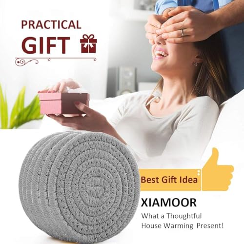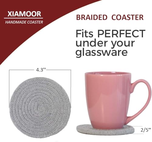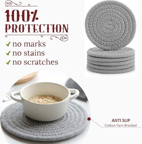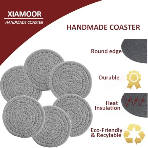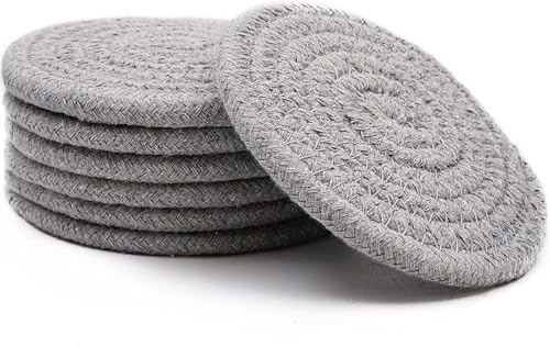 Generic - قواعد أكواب مشروبات مضفرة مصنوعة يدويًا من ام زد ماصة، 6 قطع (11 سم، دائرية، سمك 8 ملم) قواعد فائقة الامتصاص ومقاومة للحرارة للمشروبات، هدية رائعة للمنزل الجديد (رمادي فاتح، 6 عبوات) (قابلة للغسل)