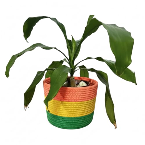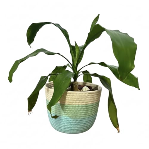 Generic - سلة تخزين من الحبال القطنية من ام زد، غطاء وعاء نباتات مزخرف، اخضر مينت وطبيعي، بلونين قطر، 20 سم