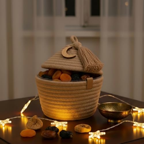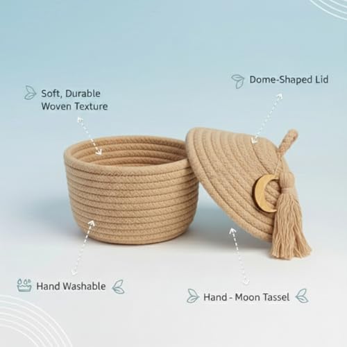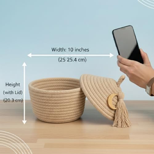 - خامة فاخرة: منسوجة يدويًا من حبل قطني طبيعي 100%، تتميز سلة التخزين هذه بهيكل ناعم ومتين بلون جميل يكمل أي نمط ديكور داخلي