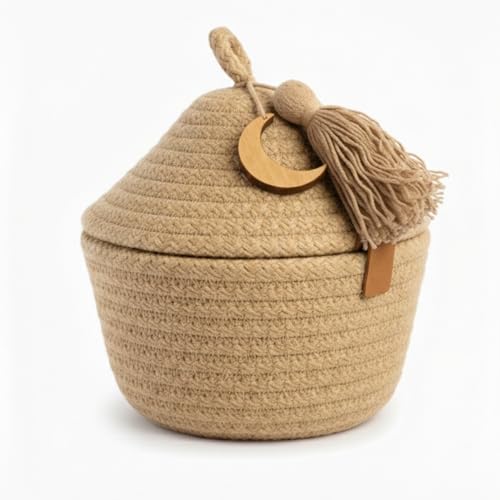 Generic - سلة تخزين من الحبال القطنية بغطاء من ام زد، سلة تنظيم منسوجة بشراشيب، ديكور منزلي لغرفة النوم والحمام وغرفة المعيشة (بيج)