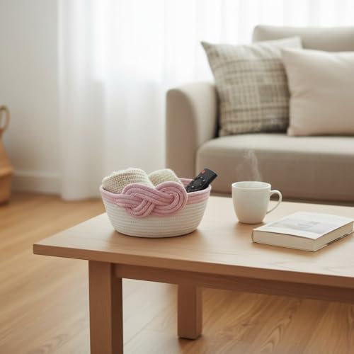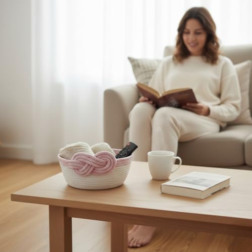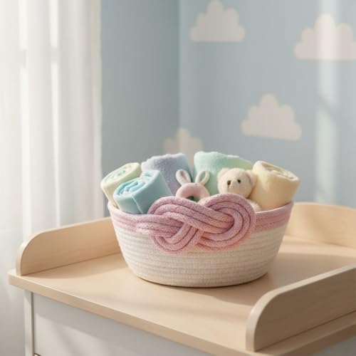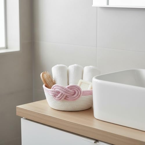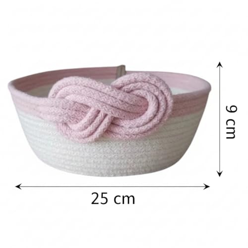 Generic - سلة تخزين من الحبال القطنية المزخرفة من ام زد بتصميم متدرج وتفاصيل عقدة، منظم منسوج يدويًا، 25 × 9 سم (لون وردي)