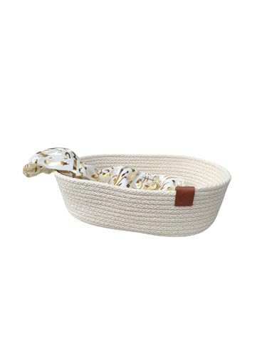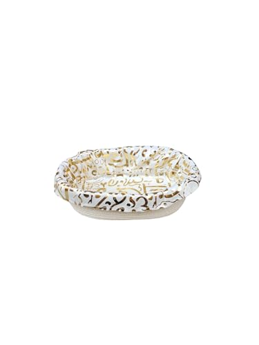 Generic - سلة تخزين مزخرفة من ام زد، نمط أبيض وذهبي، منظم قطني بيضاوي، 30 × 18 سم